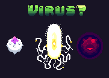 There's an artist on itch io named Penusmbic who does pixel art in a 8/16 bit type style. I think he has tutorials, etc on his twitter. You might want to look at his stuff because his work is amazing. Re: your viruses, it might be helpful to add attack, idle, move, damage and death animations so that people can use as enemies in a video game.